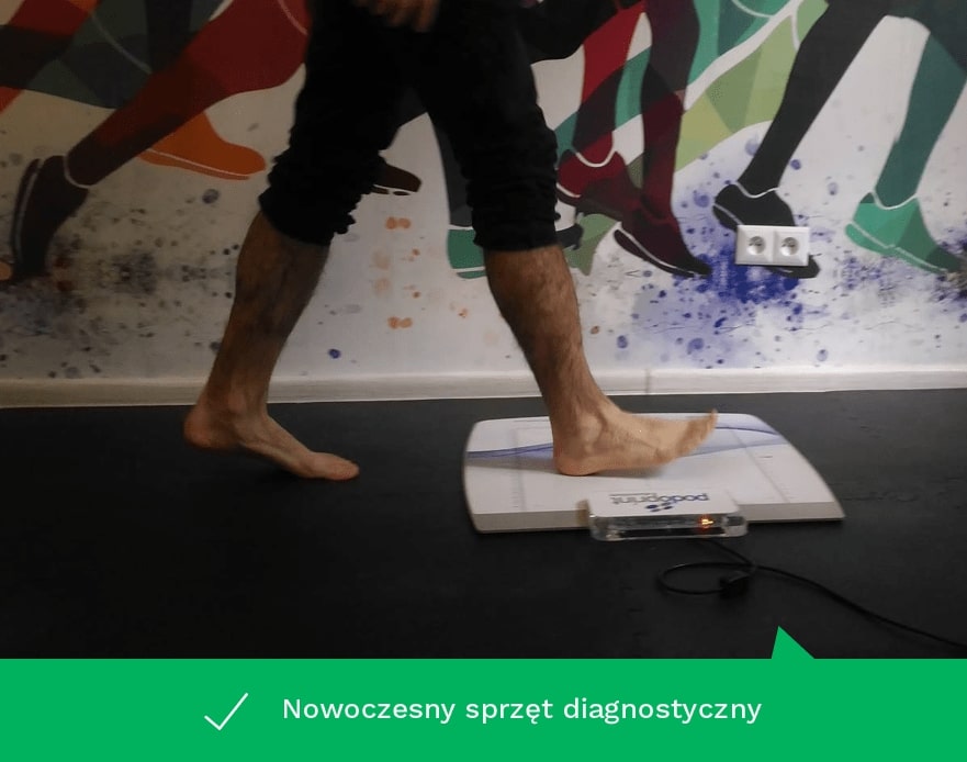 Później zostaniesz poproszony o zdjęcie obuwia i kilkukrotne przejście się po tzw. ścieżce. Wystarczy, że będziesz wykonywać polecenia fizjoterapeuty, a uda nam się uzyskać bardzo precyzyjny wynik badania. Komputerowe badanie stóp wykonujemy zarówno w pozycji dynamicznej, czyli podczas chodu, jak i w pozycji stojącej. Mamy do tego nowoczesną matę podiometryczną – dedykowane urządzenie do badania stóp.