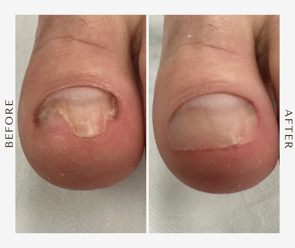 Stan po chirurgicznym usunięciu paznokcia – rekonstrukcja pomaga w odbudowie płytki po zabiegach operacyjnych.